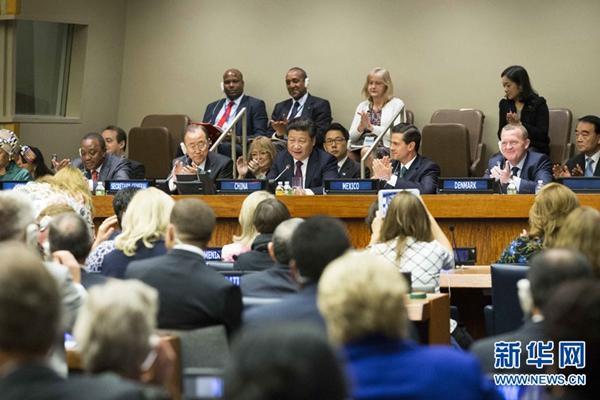 9月27日,中国与联合国妇女署在纽约联合国总部合作举办全球妇女峰会,主题是“促进男女平等和妇女赋权:从承诺到行动”。国家主席习近平和联合国秘书长潘基文出席峰会并在开幕式上发表重要讲话。